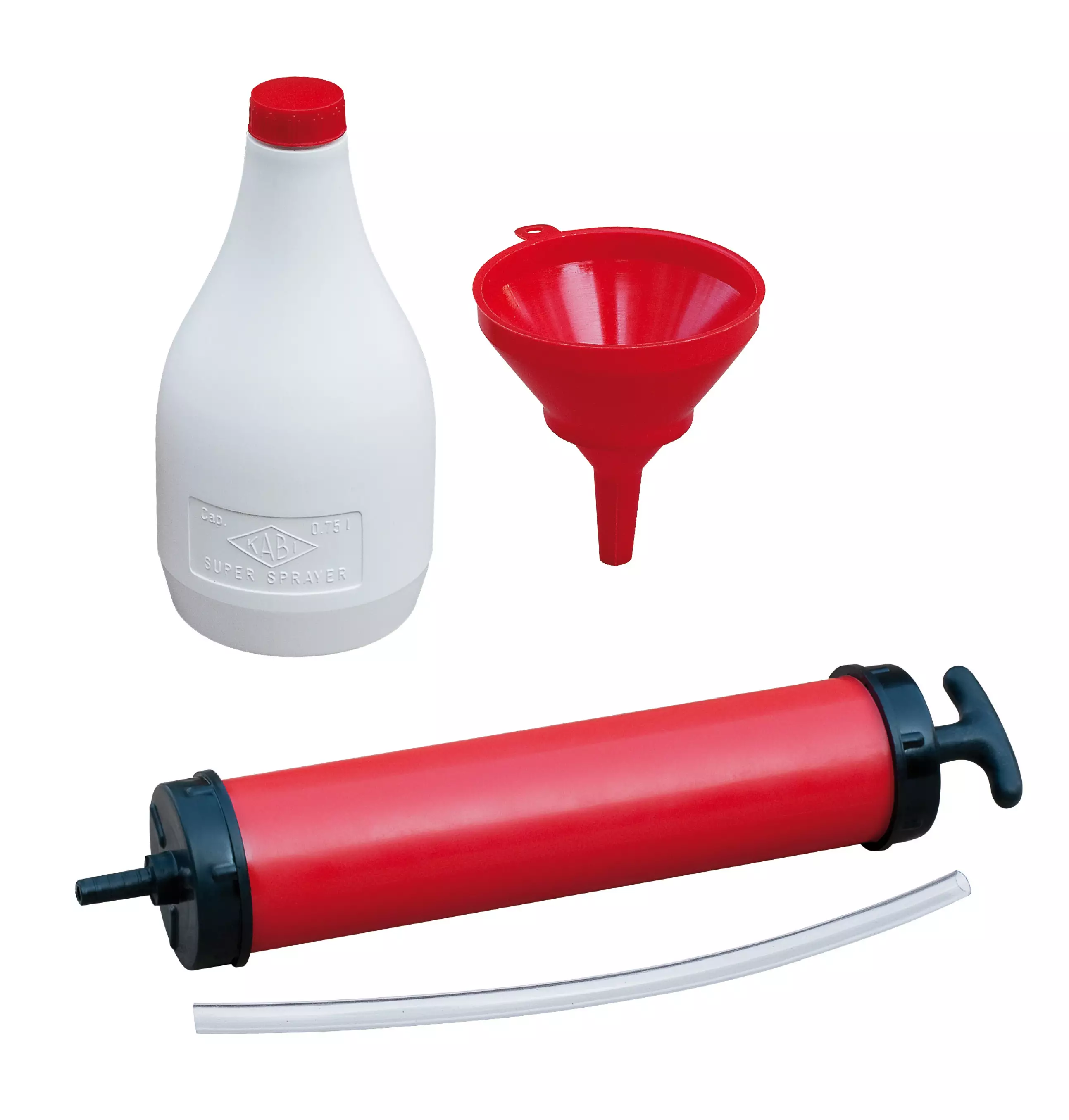Kabi -soveltuu dieseliä käyttäville puutarhakoneille -sarja sisältää --90 mm suppilo --0,7 l muovinen (PE) pullo --0,5 l imupumppu läpinäkyvällä letkulla -imupumppuun mahtuu kaikki koneessa... Lue lisää