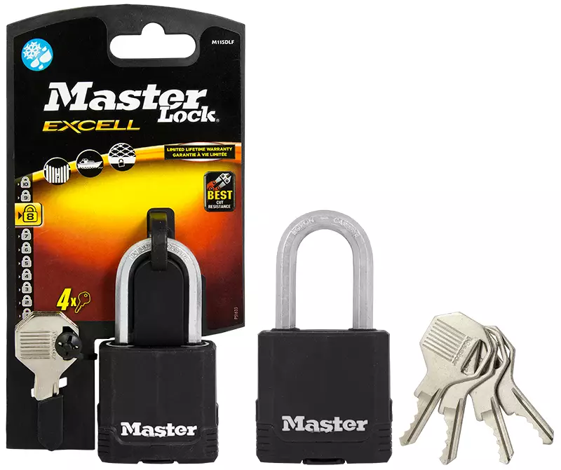Masterlock Excell -laminoitu teräsrunkoinen lukko säänkestävällä lämpömuovipinnoitteella -erikoiskova 8-kulmainen kaari, boorikarbidia -suojaluokka 8 -lukkopesä messinkiä -mitat:... Lue lisää