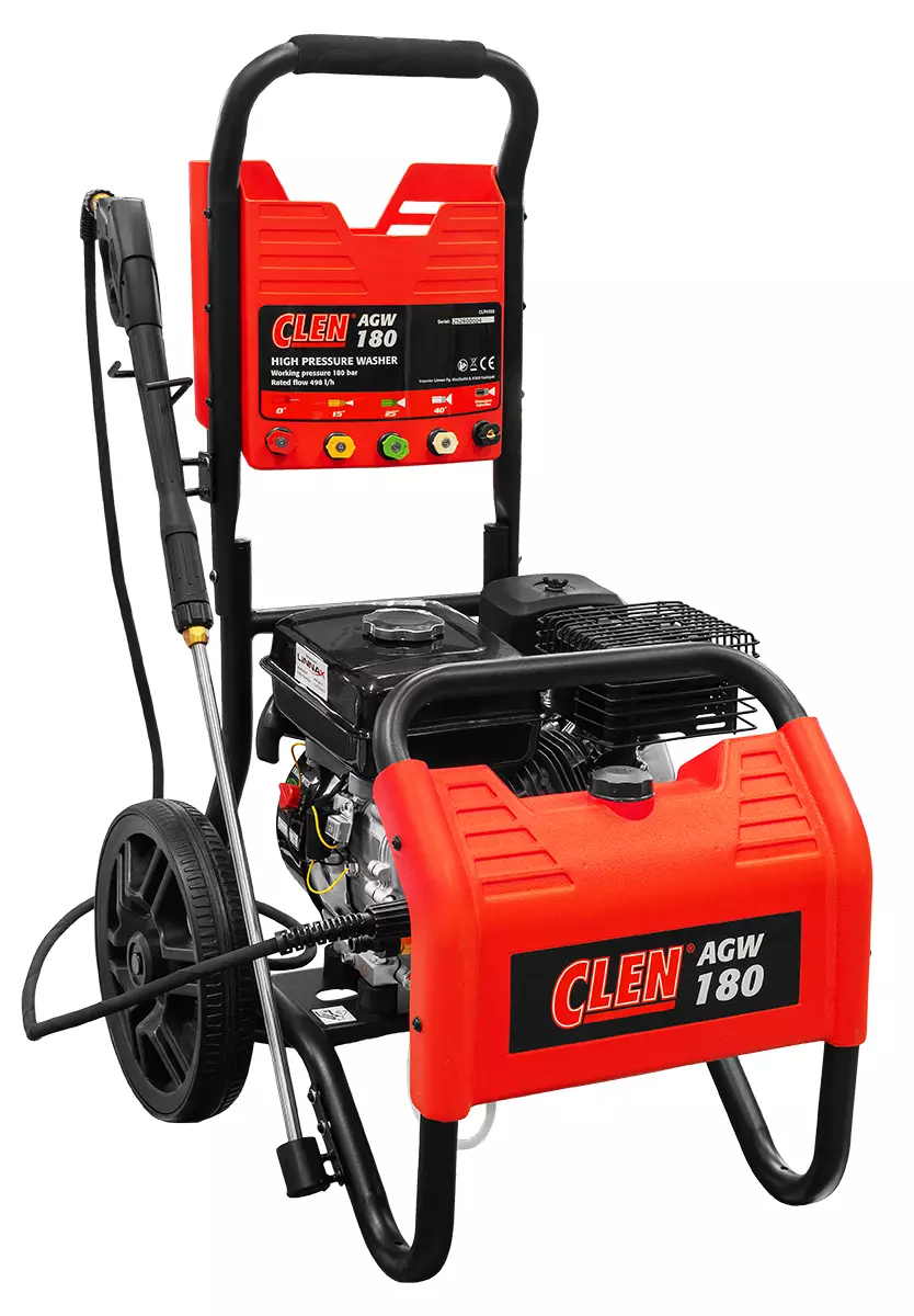 -Vakiovarusteet: Pesukahva, suutinputki, teräsvahvistettu kumipaineletku 10 m, tulovesiliitin, vaahdotin ja imuletku takaiskuventtiilillä