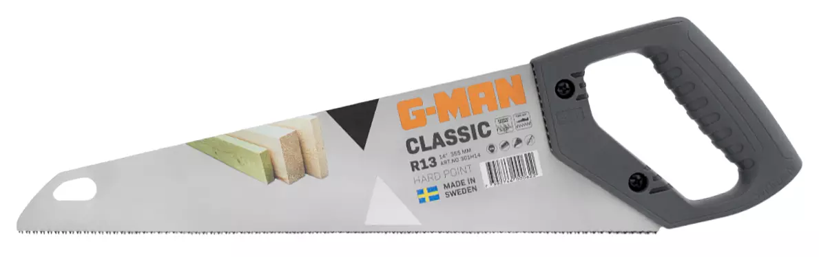 G-MAN -terän pituus 14" / 355 mm -Kokonaispituus 420mm -pakkisaha -15 karkaistua hammasta/tuuma -hampaassa kolme leikkaavaa kulmaa, leikkaa paremmin molempiin suuntiin -puun, MDF- ja lastulevyn... Lue lisää