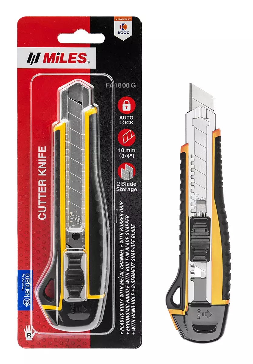Olfa MADE IN JAPAN -leikkaustyökalu luistamattomalla gripillä -terät on valmistettu korkealaatuisesta hiiliteräksestä -terän leveys 18 mm -kestävä katkaisuterä -kemiallisesti kestävä kahva...