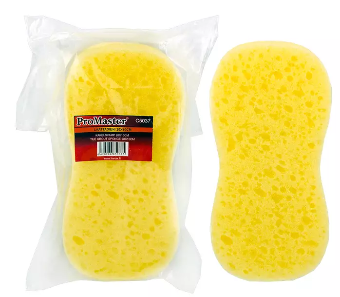 ProMaster -Synteettinen pesusieni -Koko 200x100x50mm -Laattojen pesuun ja laattasaumojen siistimiseen heti laatoituksen jälkeen -Yksittäispakkaus