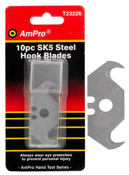 -materiaali SK5-terästä -pakkauksessa 10 kpl kaksipäistä koukkuterää -terän koko 50x20x0,6 mm -sopii veitsiin T19482, T19495, T23203, T73777 -terät muovikotelossa -IP-ripustinpakkaus -takuu 1... Lue lisää