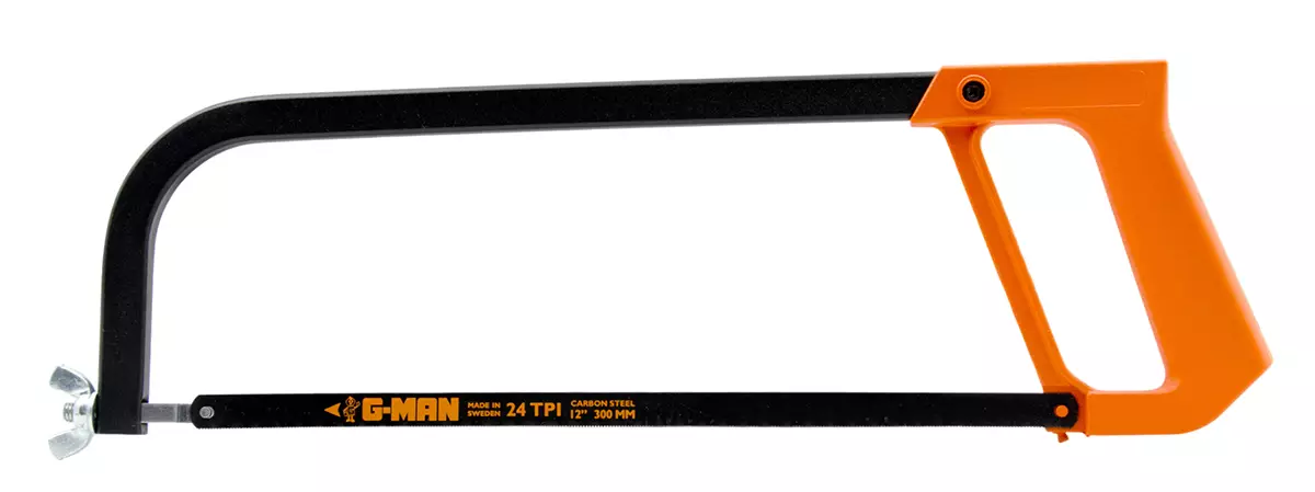 G-MAN Made in Sweden -terän pituus 300mm -hampaita per tuuma 24 -mielyttävä ja kestävä ABS-muovikahva -terä saa 4 eriasentoon 90° välein -hiiliteräs terä