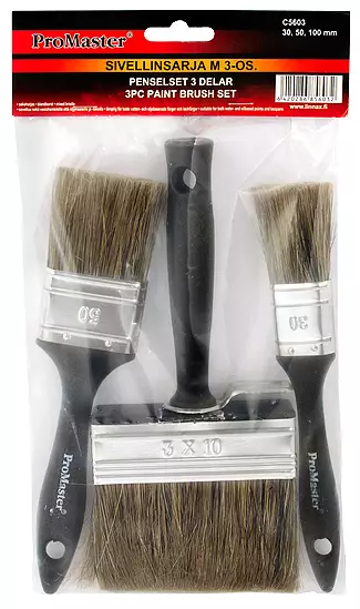ProMaster sivellinsarja -Materiaali sekaharjas: 70% luonnonharjasta ja 30% keinokuitua -Soveltuu sekä vesiohenteisille että öljymaaleille ja lakoille -Sarja sisältää koot 30mm, 50mm ja 100mm... Lue lisää