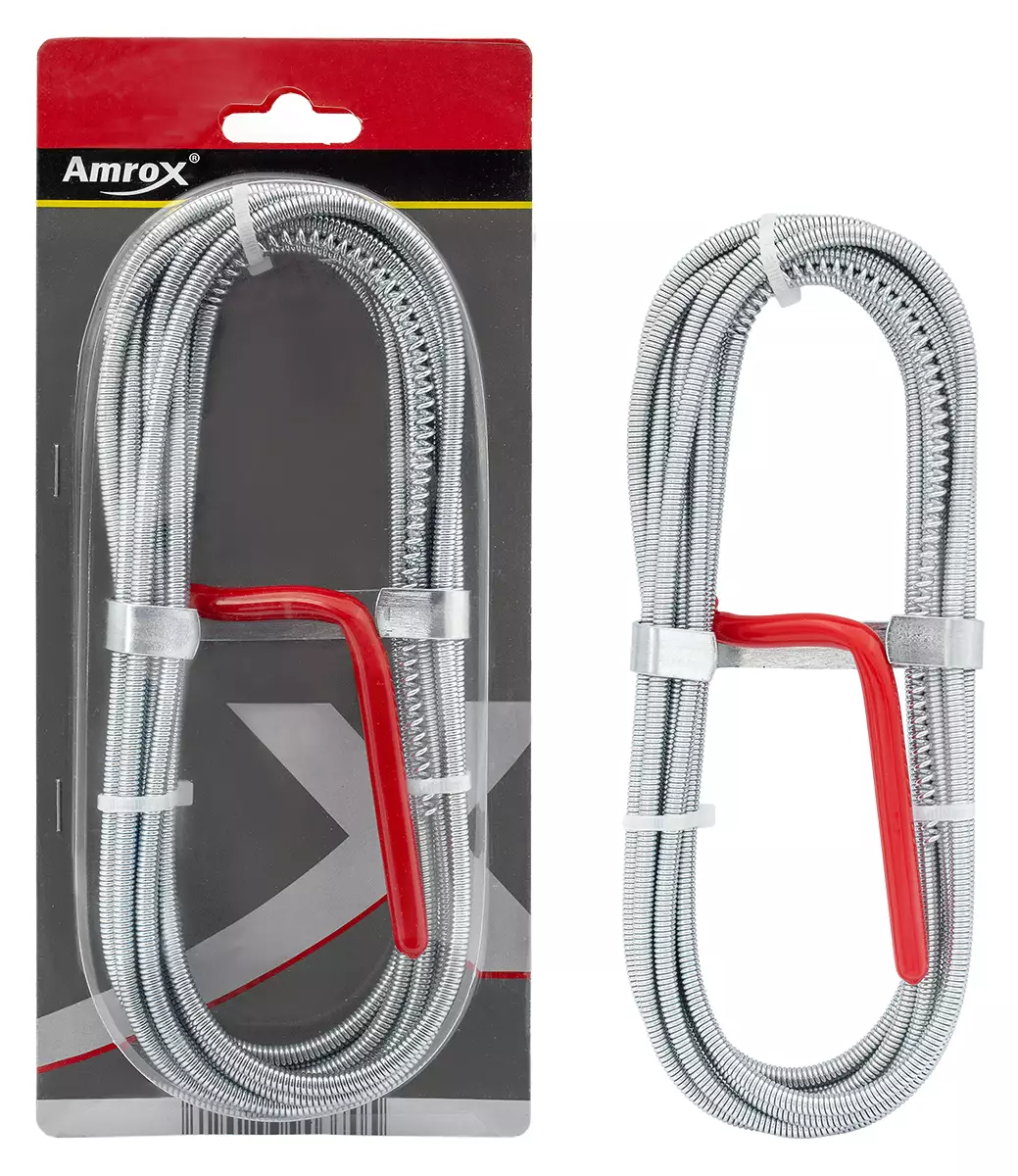 -tukkeutuneen viemärin avaamiseen -materiaali jousiteräs -vääntökahvalla, päässä puhdistusjousi -vaijerin paksuus 5mm -kokonaispituus 4m -IP-ripustinpakkaus