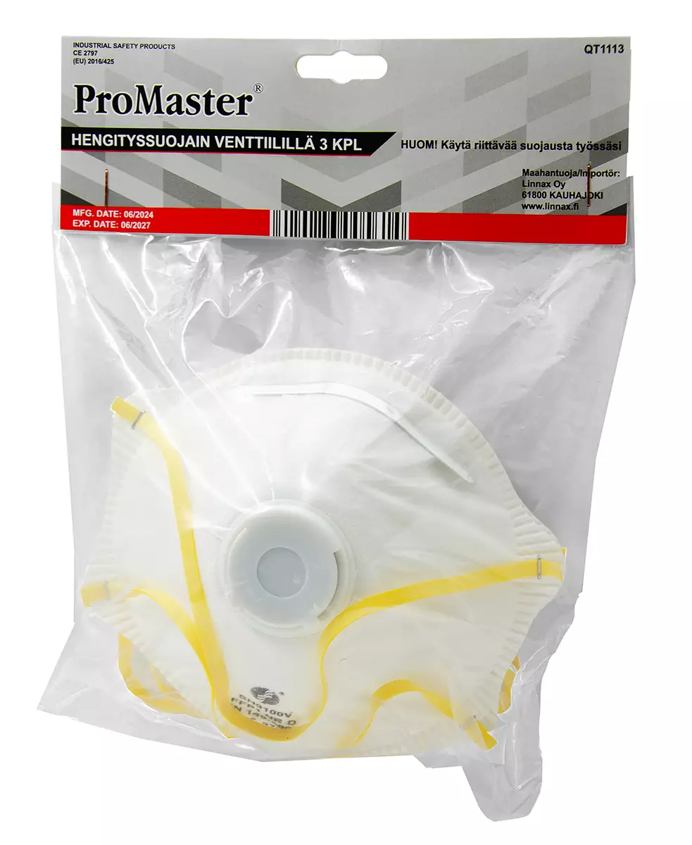 ProMaster -standardin CE EN149:2001 FFP-1 mukainen -suojaa mm. rakennus-. hioma- ja siitepölyltä -miellyttävä ihoa vasten -alhainen hengitysvastus -erinomainen suodatuskyky -muotoiltava... Lue lisää